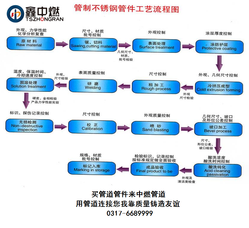 管制不锈钢管件生产工艺简易流程图: